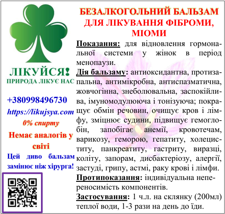 БЕЗАЛКОГОЛЬНИЙ БАЛЬЗАМ ДЛЯ ЛІКУВАННЯ ФІБРОМИ, МІОМИ