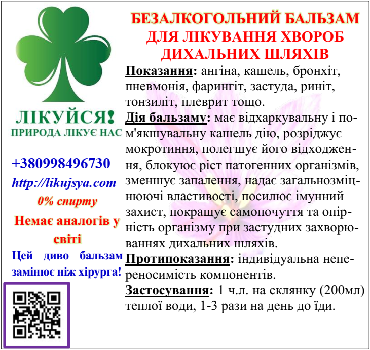 БЕЗАЛКОГОЛЬНИЙ БАЛЬЗАМ ДЛЯ ЛІКУВАННЯ ХВОРОБ ДИХАЛЬНИХ ШЛЯХІВ