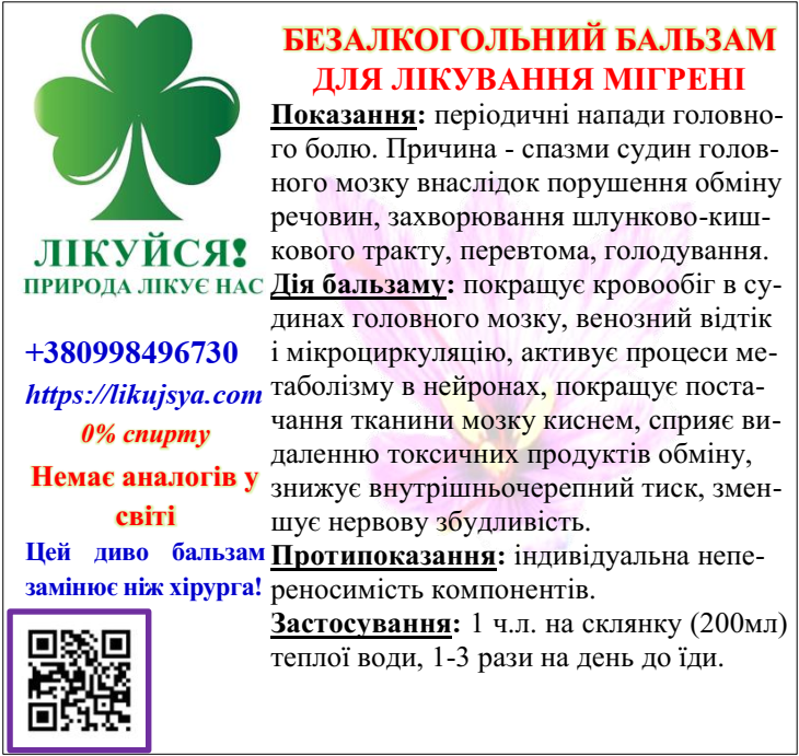 БЕЗАЛКОГОЛЬНИЙ БАЛЬЗАМ ДЛЯ ЛІКУВАННЯ МІГРЕНІ